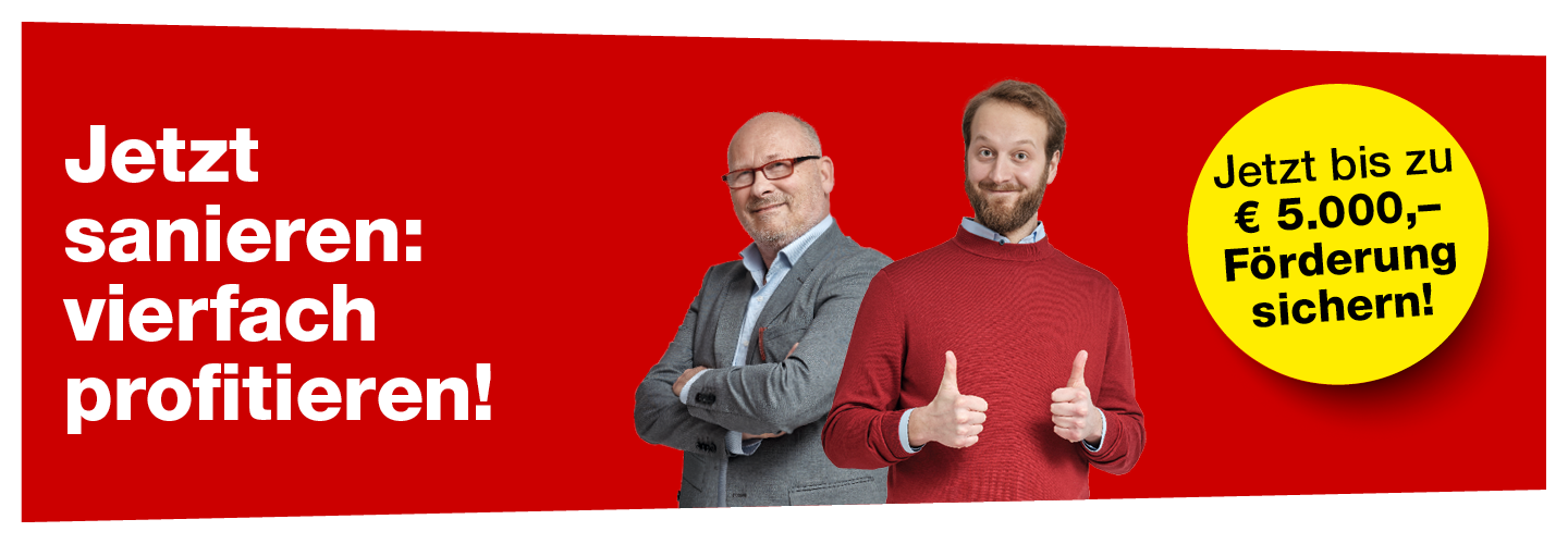 Für den Fenstertausch gibt es durch den Sanierungsbonus bis zu € 5.000,- als Investitionszuschuss. Registrieren Sie sich rasch für die Förderung unter www.sanierungsoffensive.gv.at!